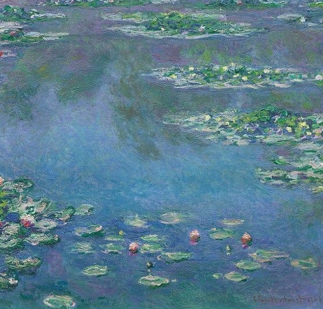 모네의 작품 중 가장 유명한 것 중 하나는 '수련'입니다. 이 작품은 그의 특유의 색채와 광의 표현을 통해 물 속에 노출된 수련과 물결, 그리고 고요한 풍경을 아름답게 묘사하고 있습니다.